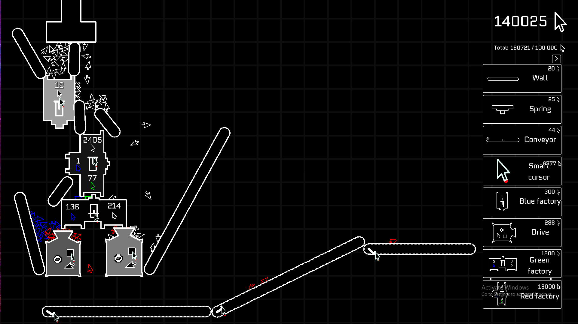 never finished automation before I beat the game, tried to get it but just gave up after a bit, I had a machine machine I used to make reds except it was on life support because of unoptimized design choices in my machine, garbage automation, and not knowing that I can rotate the drives, none of which really were the devs fault, despite that there are genuine problems in the game like the difficulty to get progression and that when you grab a wall you can't see where the edge is leading to you having to guess, but this is still a game jam release so I expected problems going into it. overall I'd say this is a good game, it doesn't overstay its welcome, and it isn't too hard to beat, but there are some genuine problems in the game so with that being said I'd give this game a 7/10